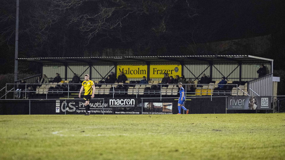 TAFFS WELL, WALES - 21ST FEBRUARY 2025: Supporters in attendance. Taffs Well v Carmarthen Town in the JD Cymru South at Rhiw Dda’r on the 21st February 2025. (Pic by Lewis Mitchell/FAW)